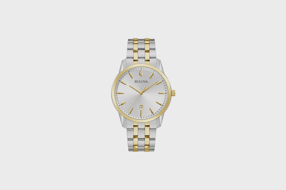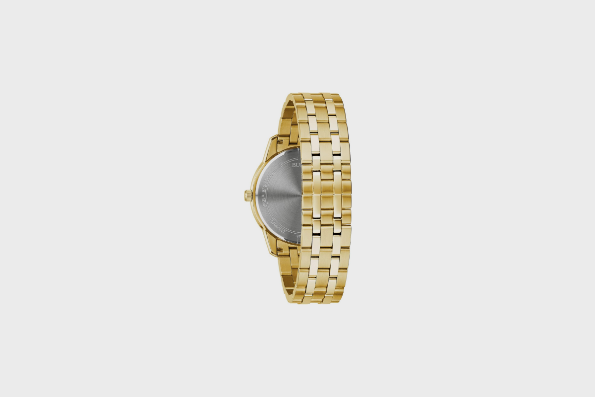 Bulova Men's Modern Gold Tone Stainless Steel 3-Hand Calendar Date Quartz Watch, Diamond Dial